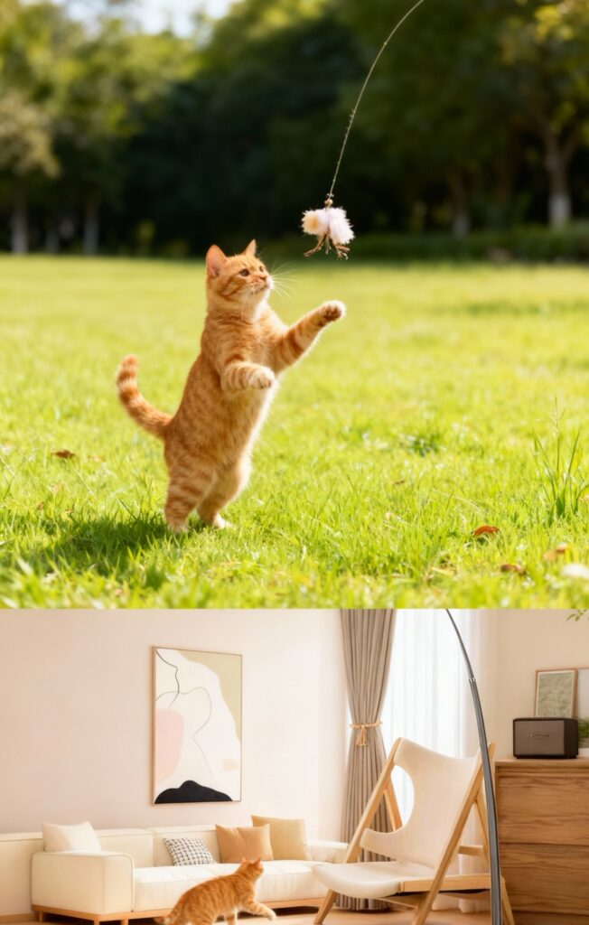 じっと座って猫を「釣る」ことで、猫を楽しませることが楽になります
