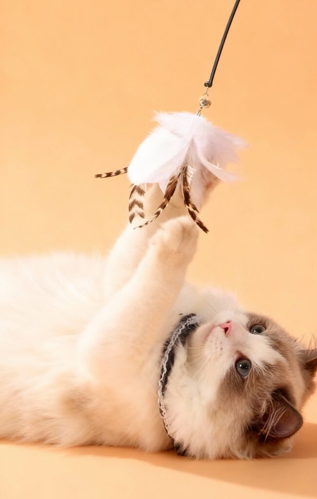 手作りの羽根セットは猫が大好きなので、飼い主さんは安心して猫を遊ばせることができます。